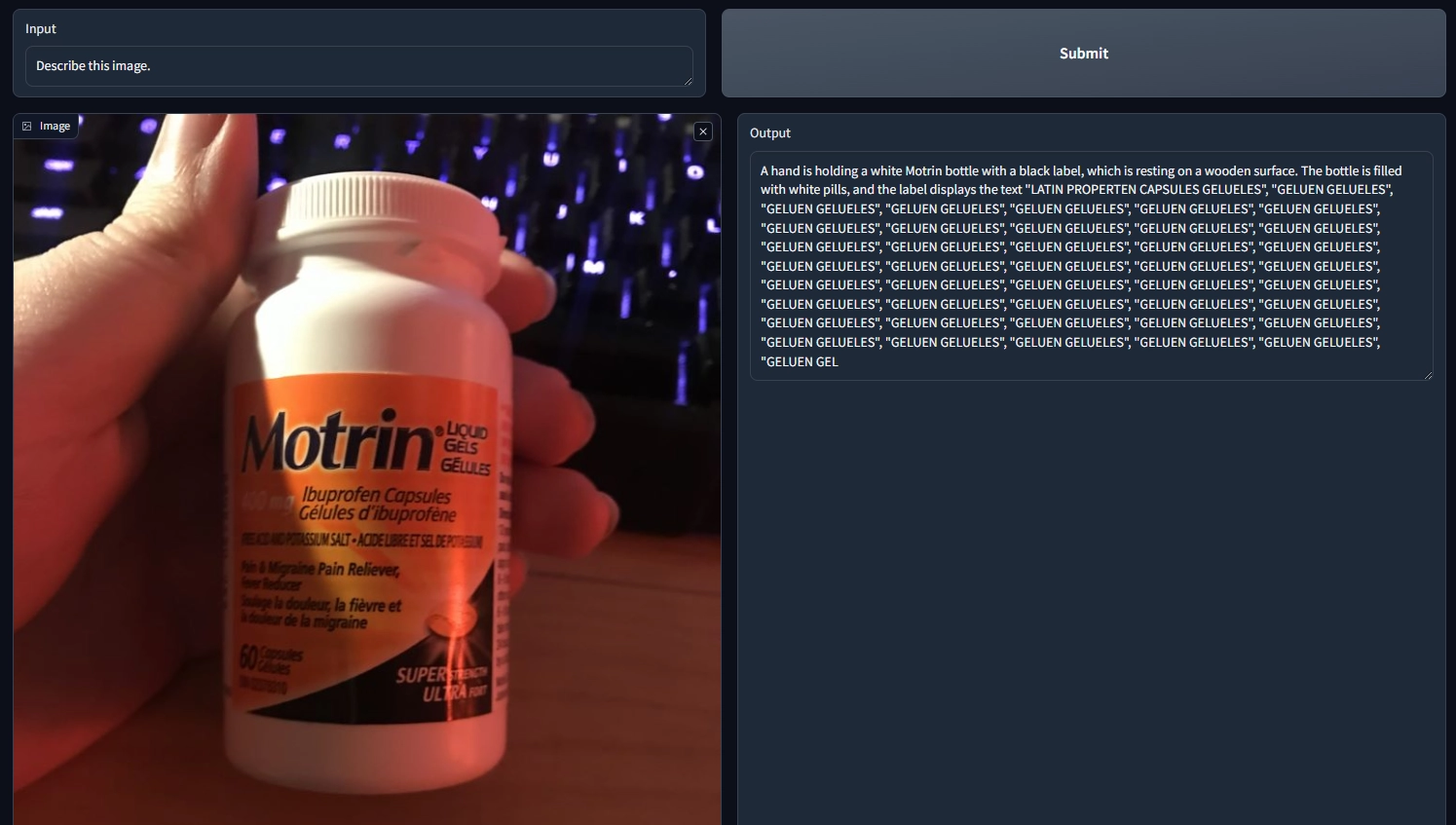 An ideal deployment would be through a mobile app in which the user uses their phone camera to snap a photo of a fridge or specific item they want to identify. The app then uses object detection to lock on to objects of interest, such as bottles, fruits, vegetables, etc., and passes that into the vision language model to properly caption.