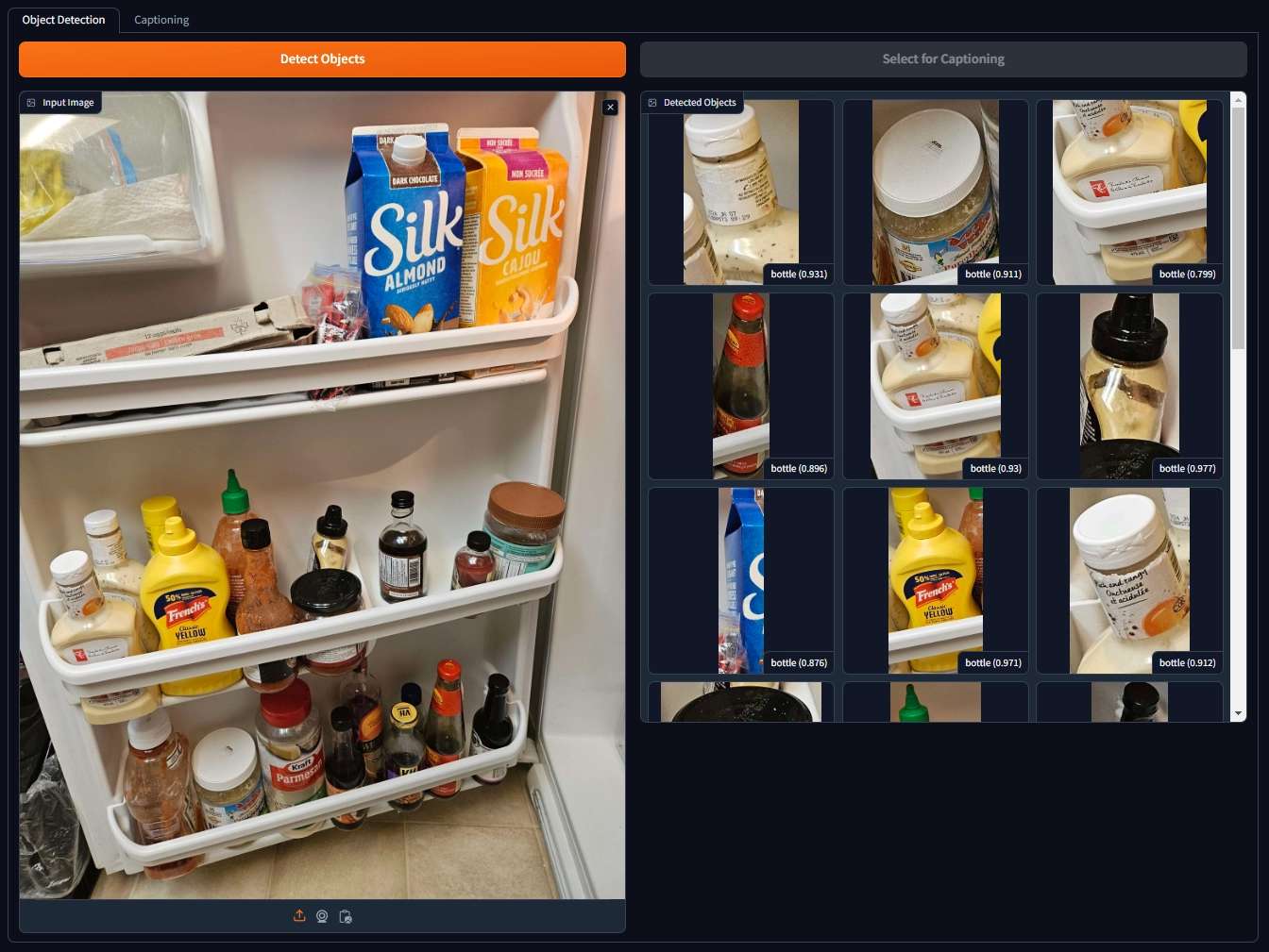An ideal deployment would be through a mobile app in which the user uses their phone camera to snap a photo of a fridge or specific item they want to identify. The app then uses object detection to lock on to objects of interest, such as bottles, fruits, vegetables, etc., and passes that into the vision language model to properly caption.